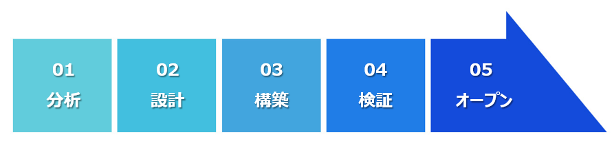上記のような企業様方の課題に対し、SoftManagerは分析から定着・改善までをシステマティックに進める「5ステップ構築」で解決へ導きます。